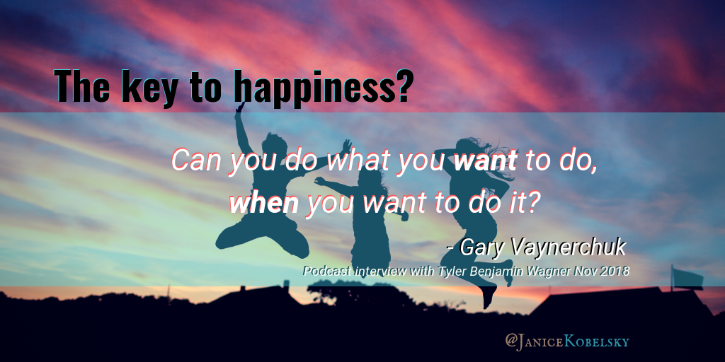 Today, it's this: "the key to happiness." Entrepreneur, author and CEO, Gary Vaynerchuk said it this way: